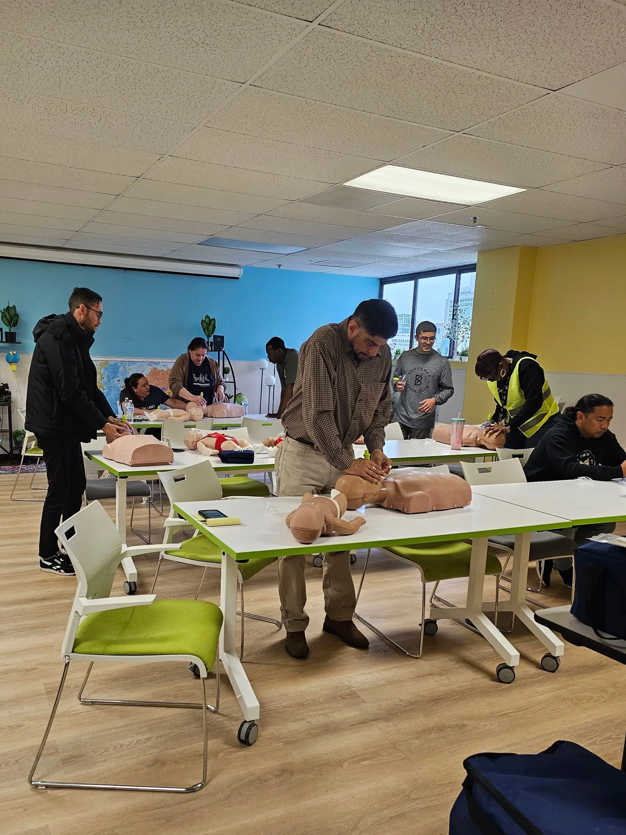 We also help build capacity for homeless shelters by providing free/discounted CPR & First Aid classes to their staff, like when we taught at Union Rescue Mission in Skid Row.